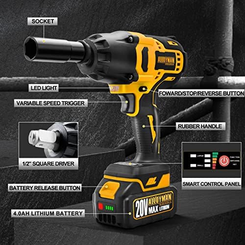Alloyman 1/2 inch Impact Wrench Cordless, Max Torque 480 Ft-lbs Battery Impact