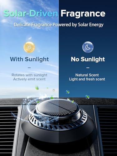 🎁 High-Speed & Silent: Car fresheners features a German-made. Solar-powered silent motor diffuses fragrances at speeds of up to 500 rotations per minute. Under 30DB noise level , making it silent.