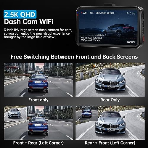 Dash Cam Front and Rear Camera, Dash Cam WiFi/APP Control Dashcam