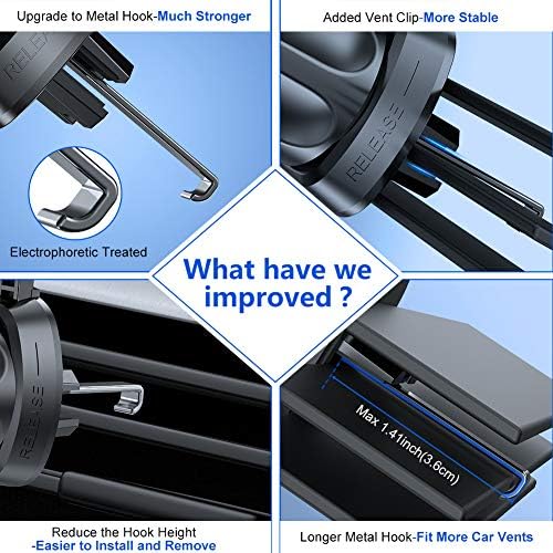 【NEVER FALL OFF- HOLDER EXPERT GENERATION】We greatly improved our car phone mount based on feedbacks from over 100,000 customers. The material of vent clip hook was upgraded to metal; enhanced its structure so this car phone holder can compatible with most cars firmly. Meanwhile it could work better even in extreme environments. [ATTENTION: Designed for Horizontal and Vertical vent]