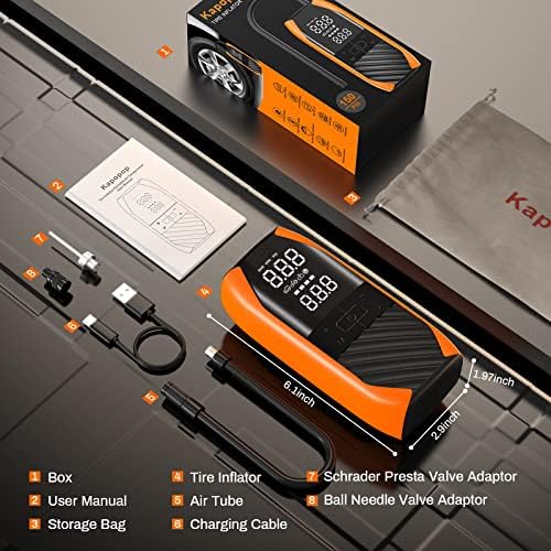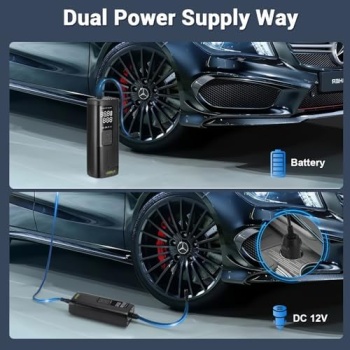 【Accurate Pressure Detecting & Auto Stop】- This tire inflator with Pressure Gauge featuring an upgraded high-precision chip,our car tire air pump provides accurate air pressure detection with an impressive precision error of only 0.05psi. Dual Large LCD digital display enables you to read the real-time pressure and the preset pressure at just a glance. The auto air tire inflator automatically stops once it reaches the preset pressure value,making it simple and safe.No need to worry about over inflating.