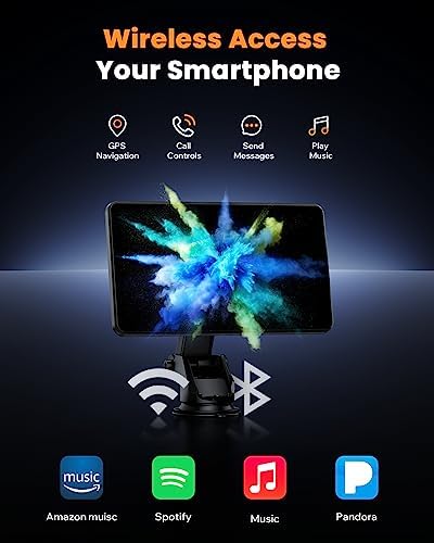 LAMTTO Portable Wireless Apple Carplay Car Stereo with Mirror Link, 7″ HD IPS