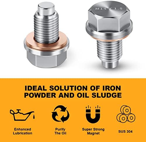 FITMENT – This M14 x 1.5 Magnetic Oil Drain Pan Plug perfect fit for Honda Acura Ford GM Mazda Hyundai KIA and more selected models with 14×1.5 Threaded. Use Amazon fitment drop down to ensure this will work with your vehicle.