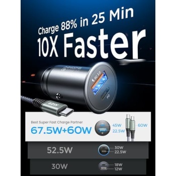 USB C Car Charger 54W Super Mini AINOPE All Metal Fast USB Car Charger Adapter